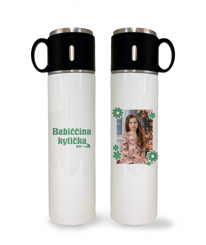 Milovníky výletů a cestování potěšíte termoskou s praktickým hrníčkem. S vlastním popisem nebo fotografií bude dokonalým společníkem na cesty.