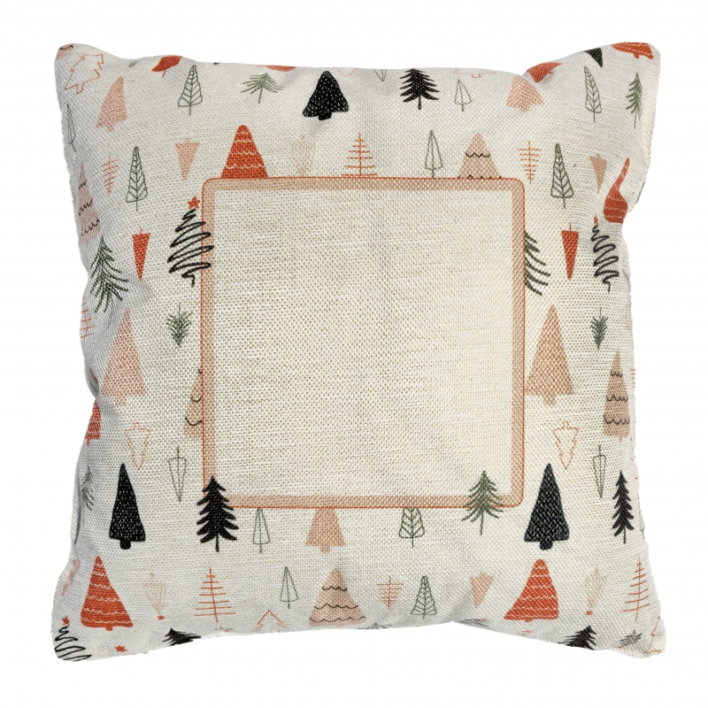 Stylový polštář z hrubého plátna s potiskem stromečků.