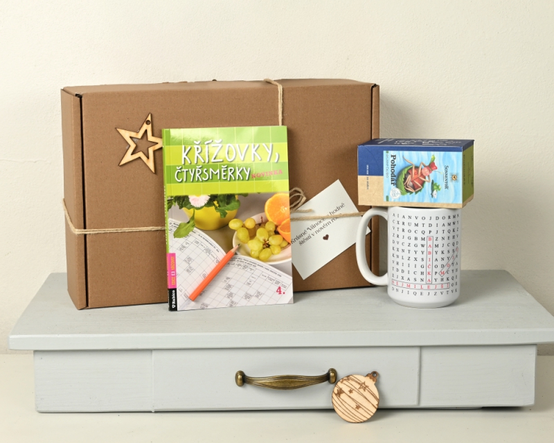 Originální dárek, který potěší každou babičku. Balíček spojuje radost z luštění s chvílemi pohody u šálku teplého čaje nebo kávy.