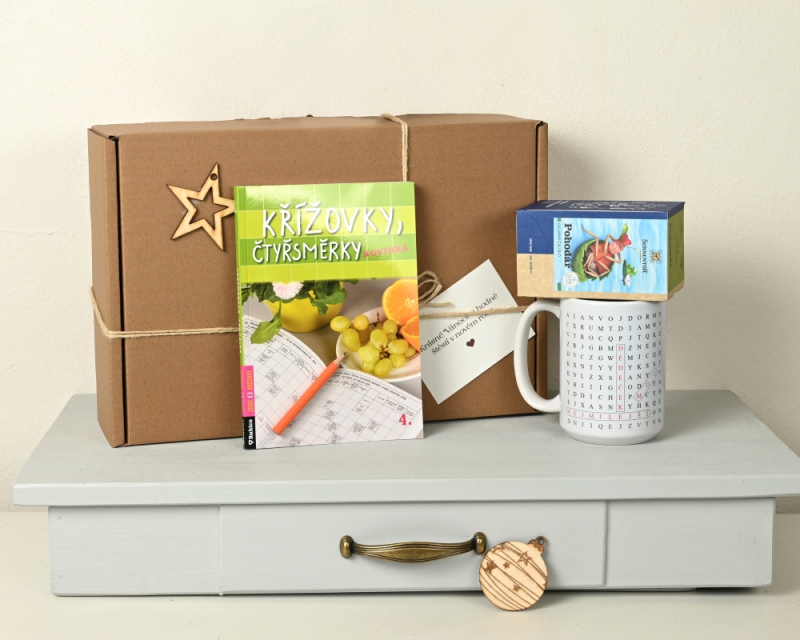- ✔ sešit plný křížovek a osmisměrek pro příjemné chvíle odpočinku